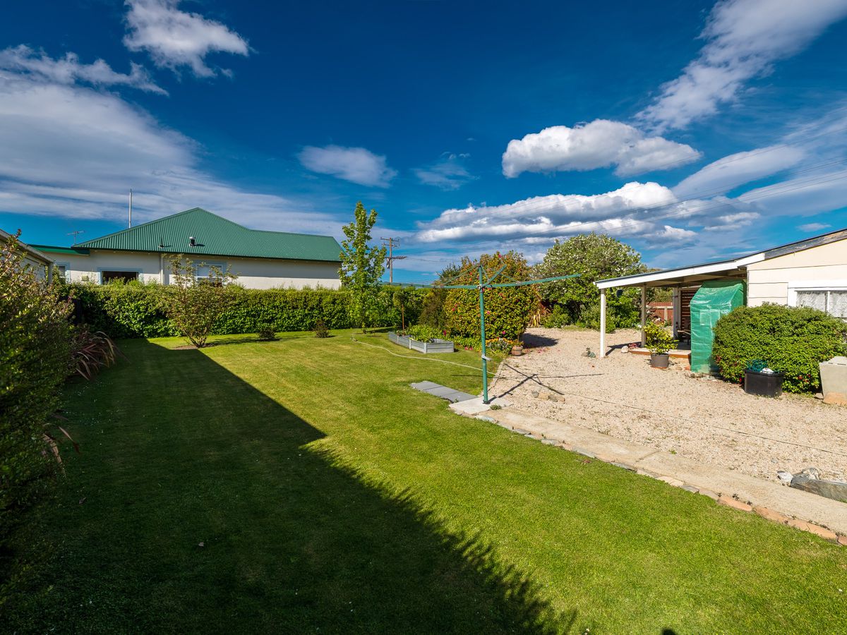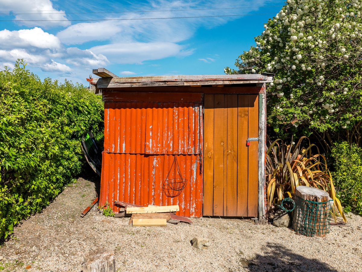 Situated on an easy-care corner section, the property boasts a colourful garden, vegetable plots, and a semi-covered BBQ/entertaining area — ideal for relaxed outdoor dining. A single garage with an automatic door opener, storage shed, and generous off-street parking (including separate access for a campervan or trailer) make this home exceptionally practical.