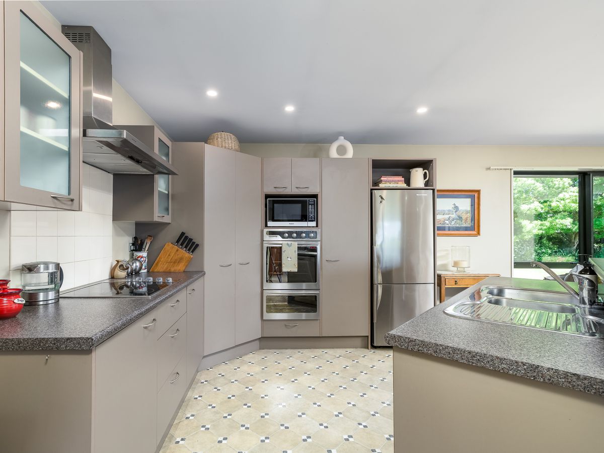 As you step inside, you are greeted by a light-filled entrance that flows into an expansive open-plan kitchen, dining, and living area. The stylish kitchen is equipped with a double oven, dishwasher, rangehood and perfectly situated for family gatherings. Two sliding doors lead you to a sun-drenched morning deck and outdoor entertainment area, where you can soak in the stunning views of the hills and surrounding farmland.