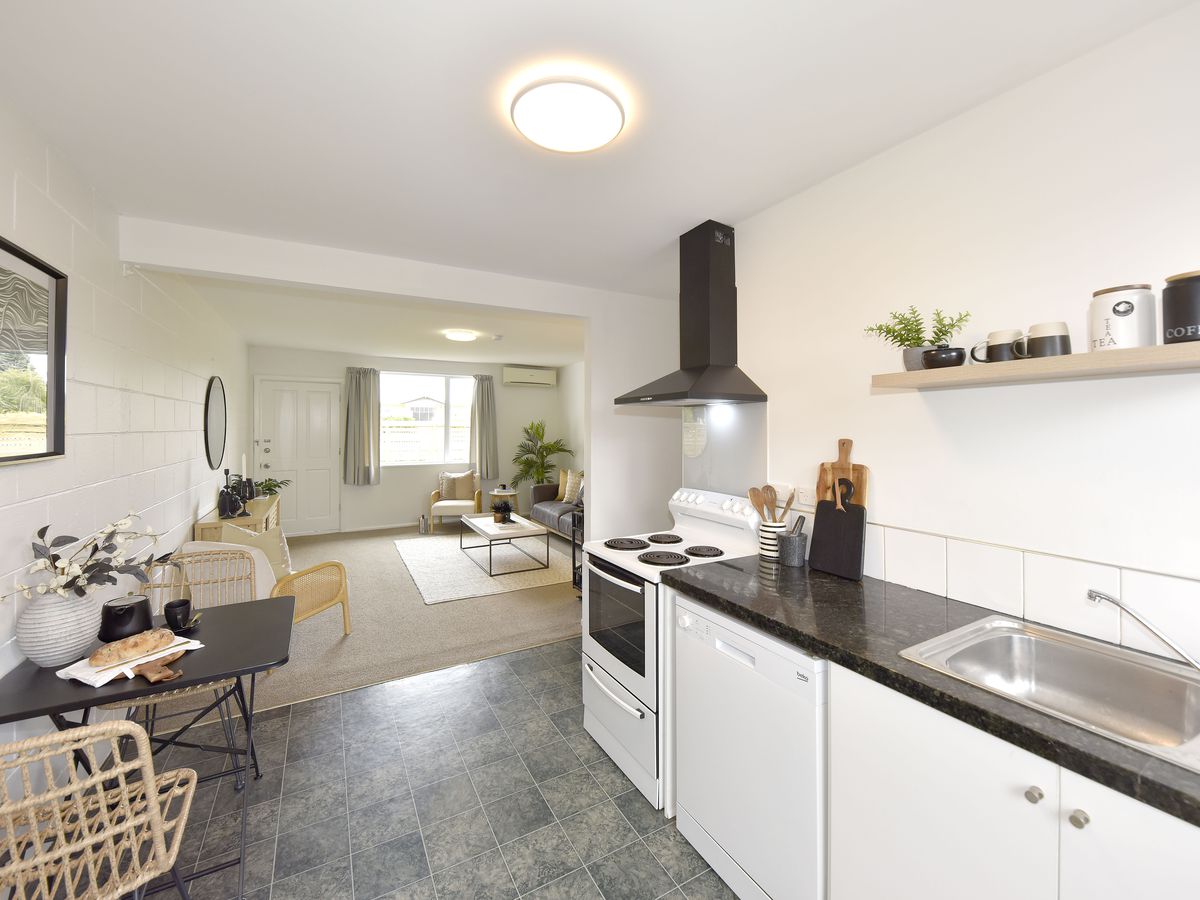 The home features a light filled open plan kitchen and living area with a heat pump for year round comfort, along with one double bedroom, one single bedroom and a modernised bathroom. Outside, the property offers two fully fenced outdoor areas at the front and rear, with lawn and garden spaces, a practical bonus for unit living. A carport with lockable door provides off street parking and additional storage.