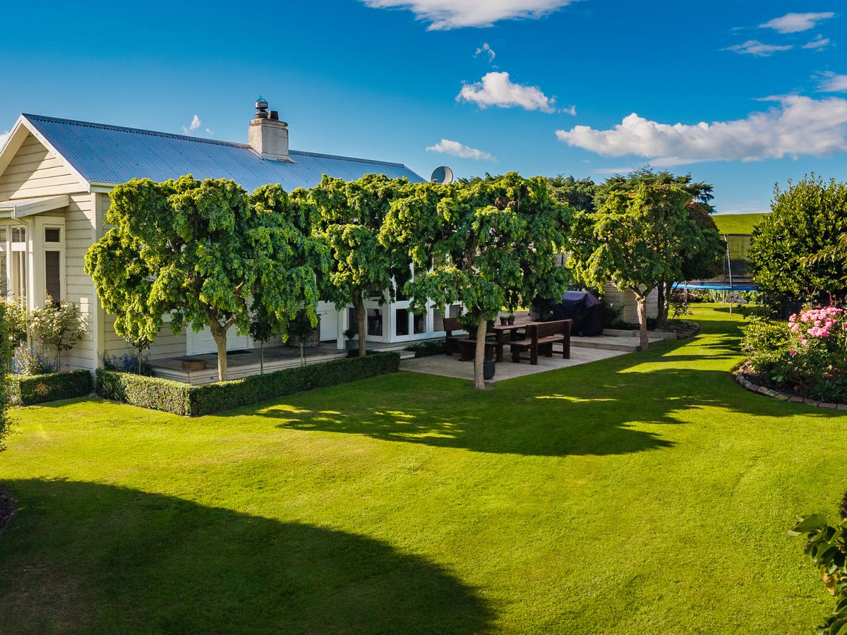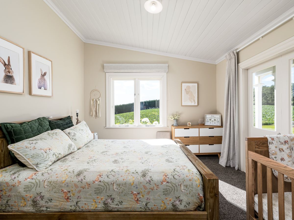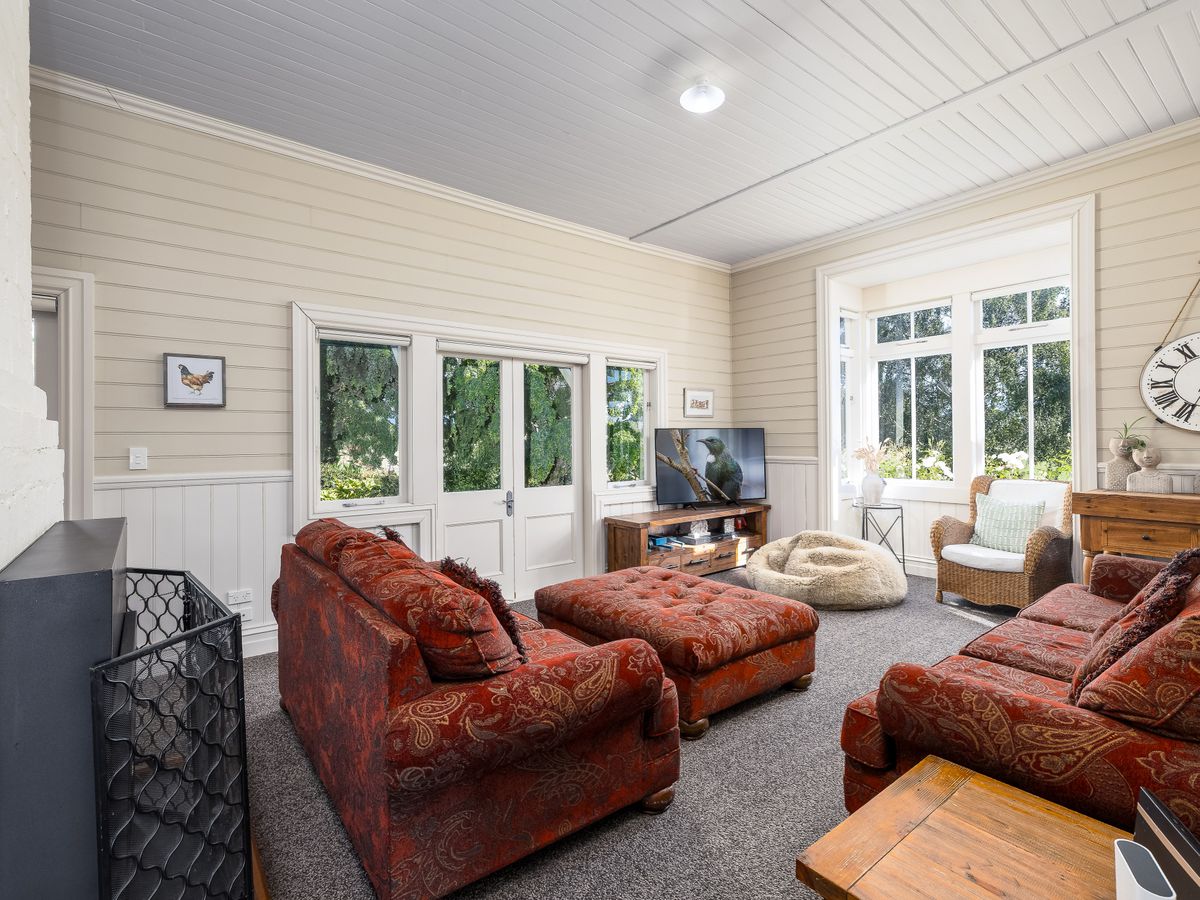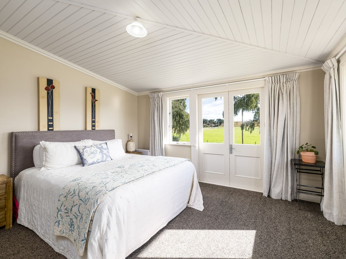 Year-round comfort is assured with a new log fire, two heat pumps, and a coal range. The warm northerly aspect floods the living areas with natural light and captures picturesque rural views.