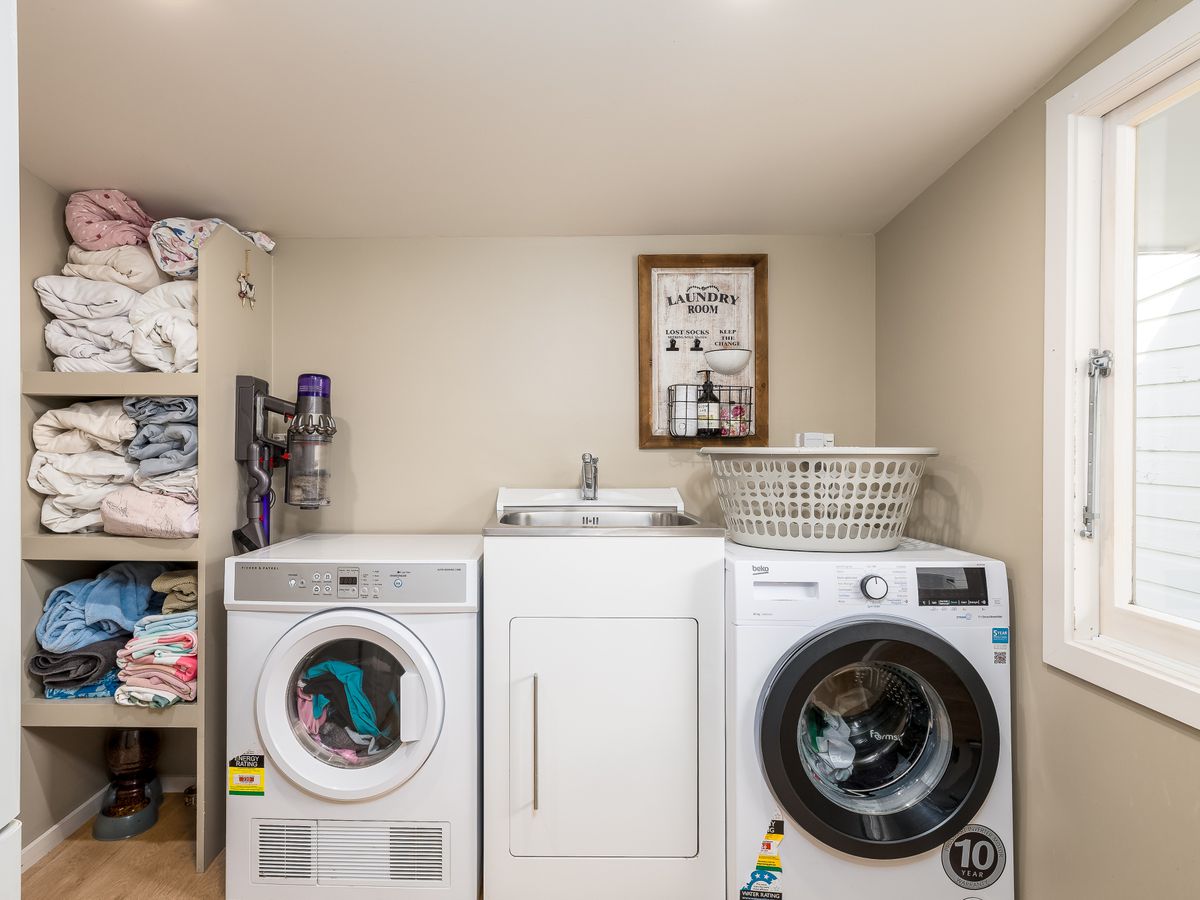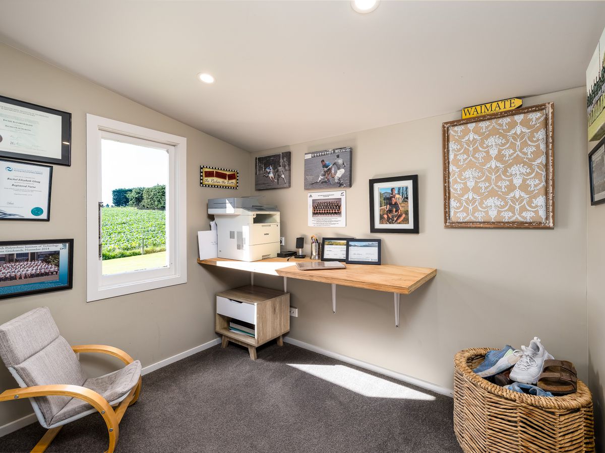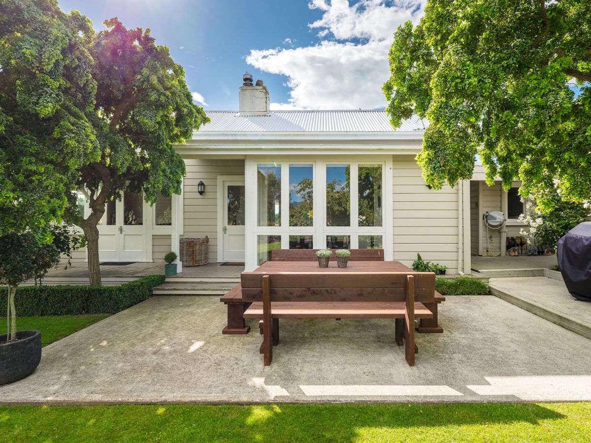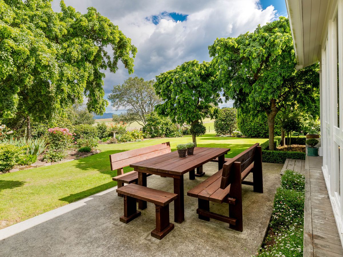 Year-round comfort is assured with a new log fire, two heat pumps, and a coal range. The warm northerly aspect floods the living areas with natural light and captures picturesque rural views.