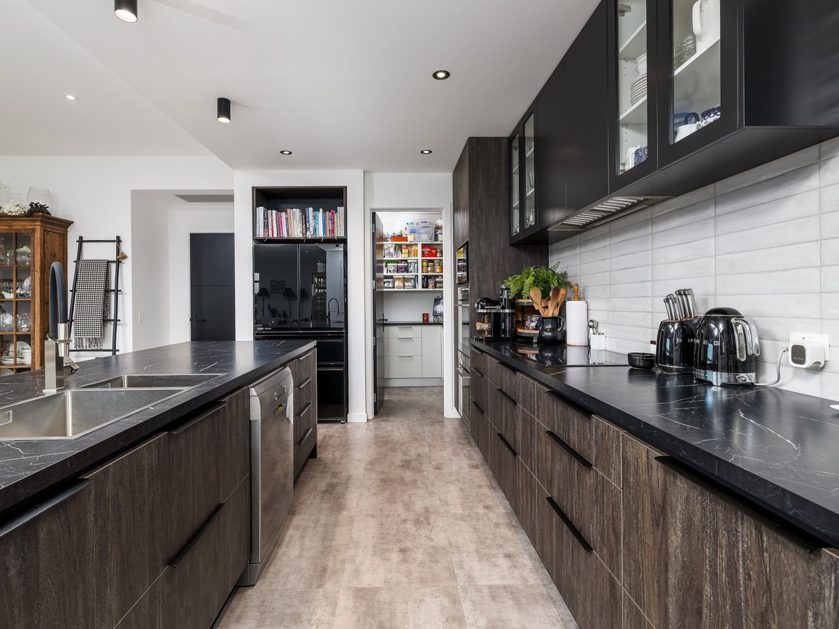 * A chef’s kitchen with an island benchtop, premium cabinetry, and high-end appliances