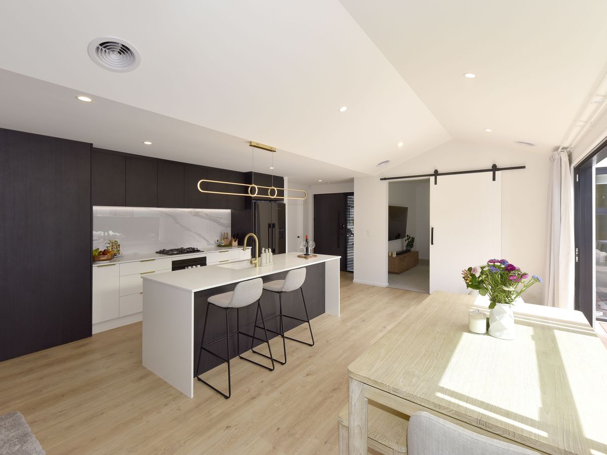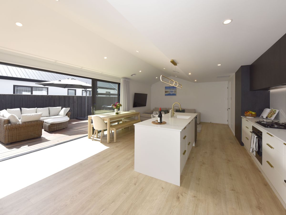 * Designer kitchen that flows out into a open dining and living area with vaulted ceilings