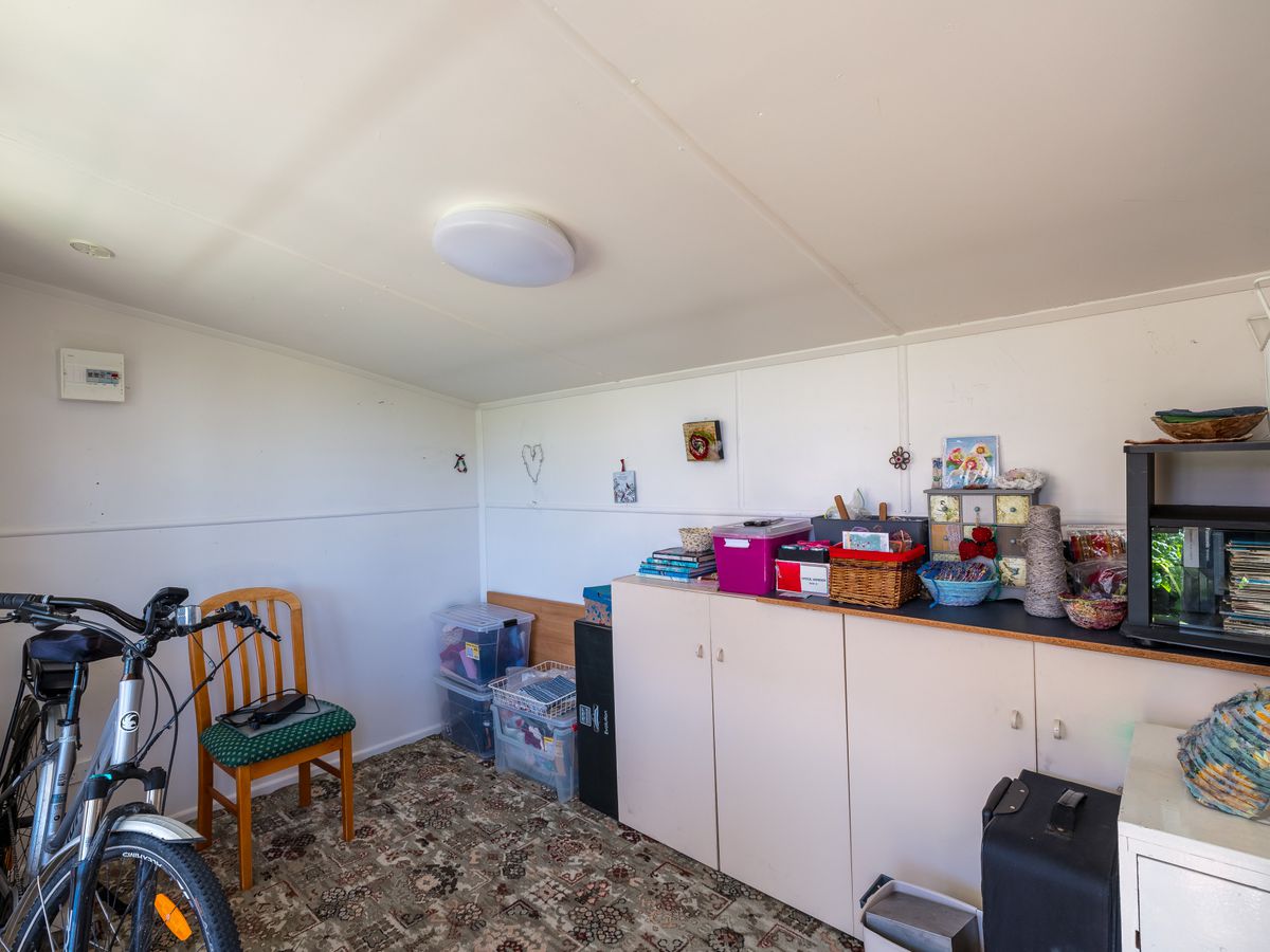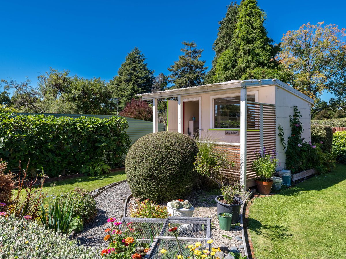 Step outside and be enchanted by abundant fruit trees, thriving vegetable gardens, and a large polyhouse—ideal for anyone who loves home-grown produce. From apricots, apples, and figs to raspberries, strawberries, and blackboys, there’s plenty to harvest and enjoy. A bird aviary and established gardens bring year-round birdlife and beauty. Two versatile hobby rooms, ‘The Crib’ and ‘The Bach’, plus a concrete pad with power for a camper, give endless options for hobbies or projects.