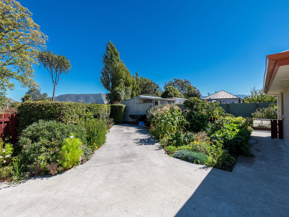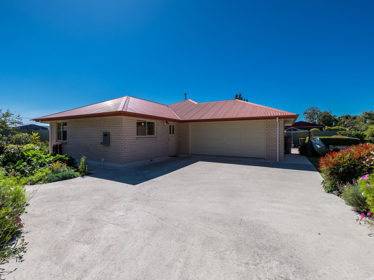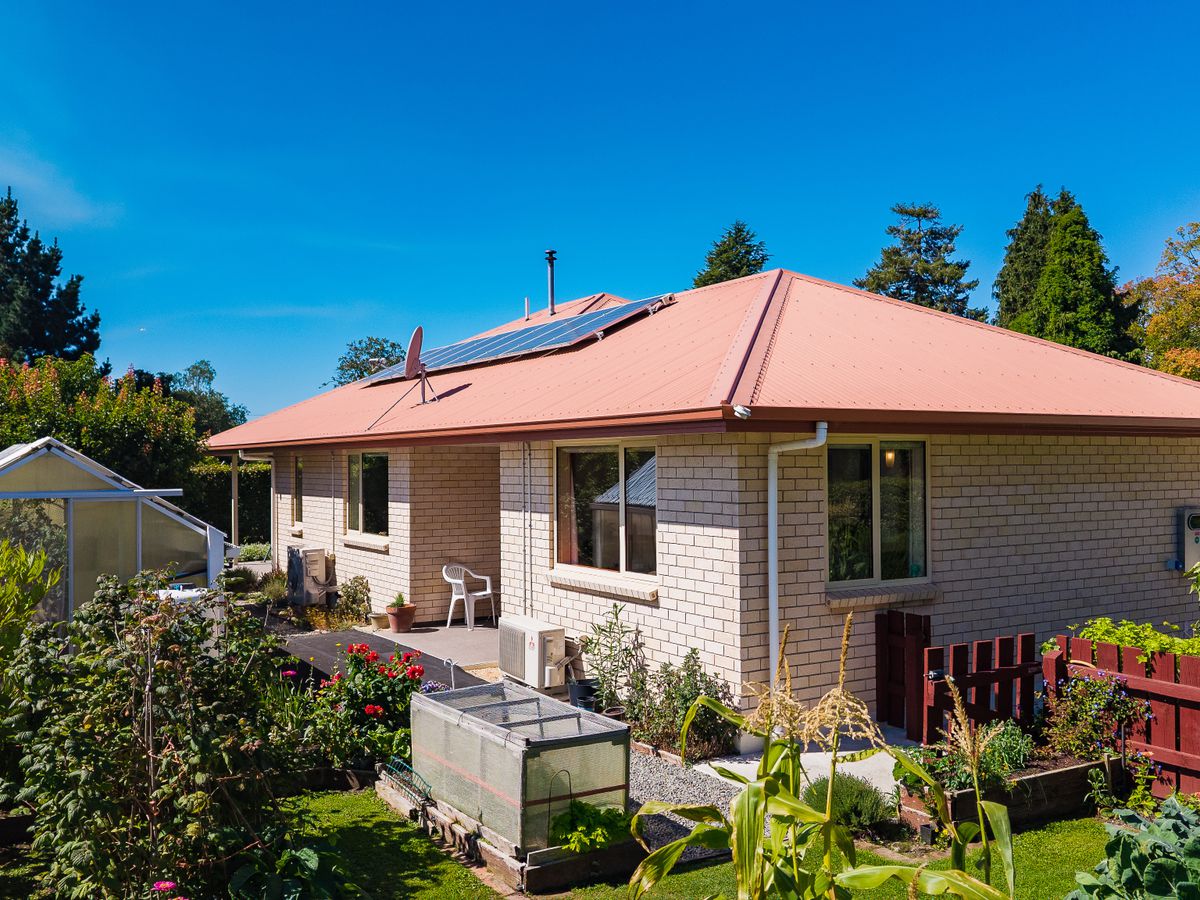 Step into your very own Garden of Eden on a private, leafy corner section, where modern comfort meets sustainable living. This 2014 home offers spacious open-plan living, with a kitchen and dining area warmed by a pellet fire and heat pump. Double-glazed throughout and boosted with solar panels, the home is designed for comfort and efficiency. The living area features a cozy alcove—perfect for a home office, reading nook, or piano corner—while sliding doors open onto a covered patio, bringing the outdoors in. Two generous bedrooms, a family bathroom close to the bedrooms, and a separate toilet make family life easy, while the internal garage with laundry adds practical convenience.
