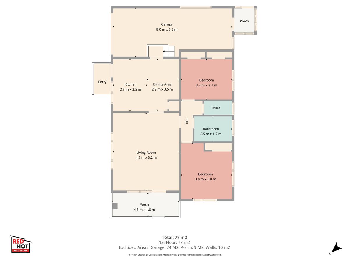 Inside, the home features two generous double bedrooms, both with built-in wardrobes and double-glazed joinery. The updated kitchen and dining area flows through to a spacious living room, which opens out to a sunny patio – the perfect spot to relax and enjoy the sunshine.